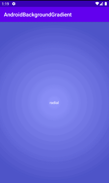 See a sample screenshot of a radial gradient used for a gradient background in Android below.