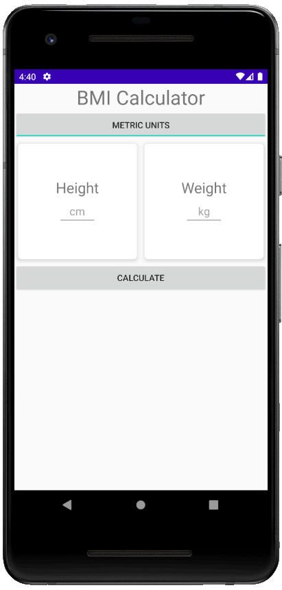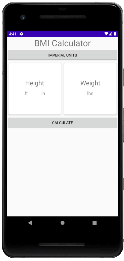 - EditText widgets for capturing the weight and height measurements in both measurement systems
