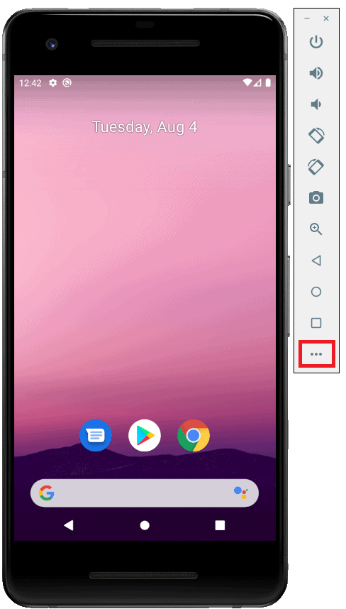 If you want to use the Android emulator to test the QR code scanner works, you will first need to go into the emulator settings by selecting the icon on the emulator with three dots.