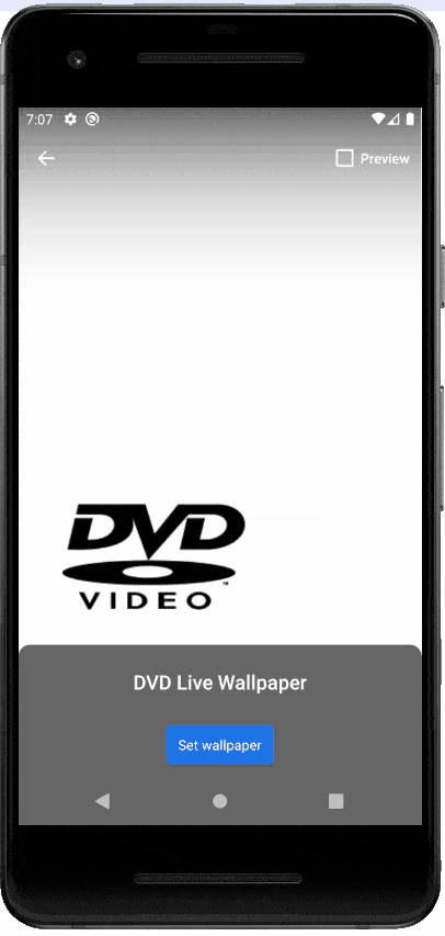 See a sample screen capture of the live wallpaper containing the animated DVD logo below.