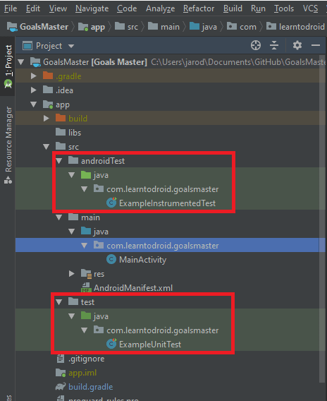 - The app/src/androidTest directory contains your instrumented and end to end tests