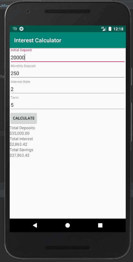 - Includes a TextInputLayout for the initial deposit, monthly deposit, interest rate and term