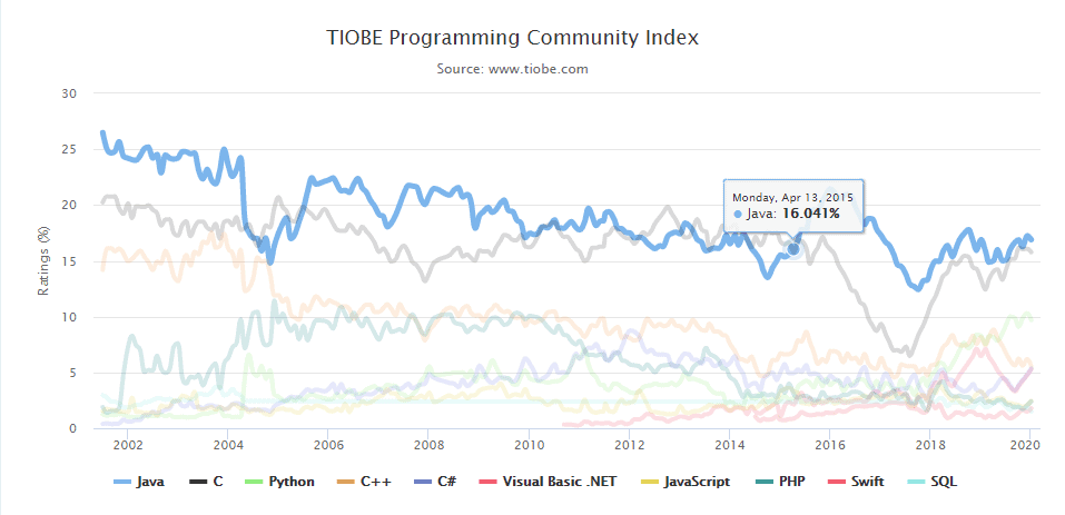 As you can see from the TIOBE Programming Community index results, Java the most popular programming language. If you are looking getting into software development as a career, although it depends on where you live but generally lots of job opportunities in Java software development will be in demand even if it is outside of mobile app development.